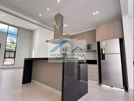 Vende-se Casa no Condomínio Monte Alcino novinha, sendo 03 suítes com armários planejados, banheiros com box e espelhos, cozinha americana planejada com geladeira, forno elétrico, micro-ondas, cooktop e coifa.